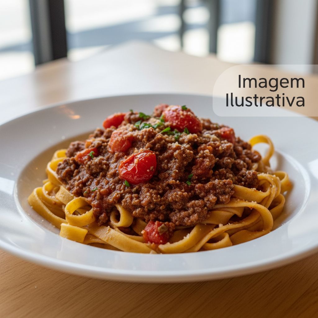 Talharim servido com um rico molho bolonhesa, ao sugo ou 4 queijos.