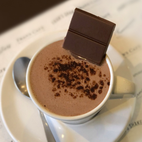 Chocolate Quente servido com uma barra de chocolate