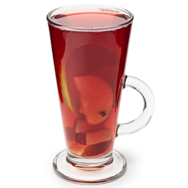 Chá de frutas silvestres, pedaços de maçã, laranja, cravo e cranberry