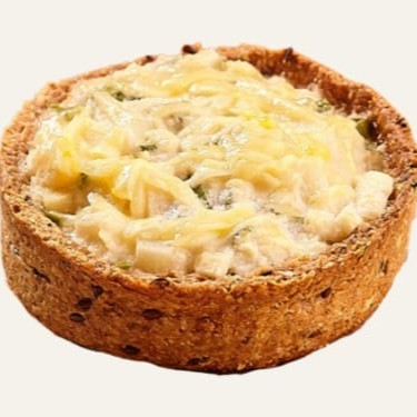 Com alho poró, massa à base de aveia e linhaça.