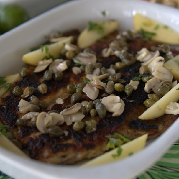 Peixe Assado Com Molho De Alcaparras E Champignon