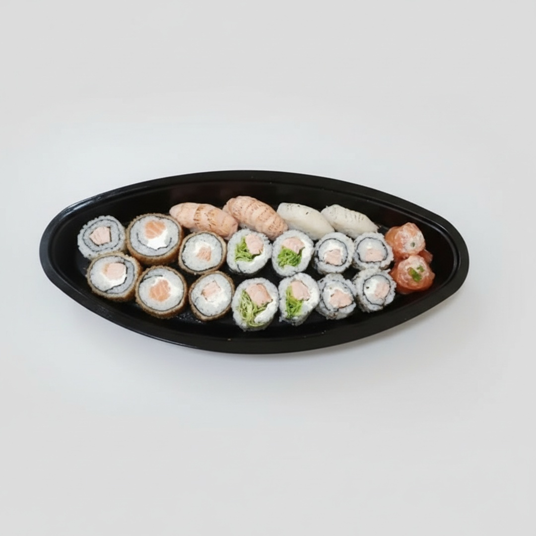 12 Uramaki Cru, 12 Sushi Cru, 3 Nigiri De Salmão Cru, 6 Joe De Salmão Cru E 10 Sashimis Misto.