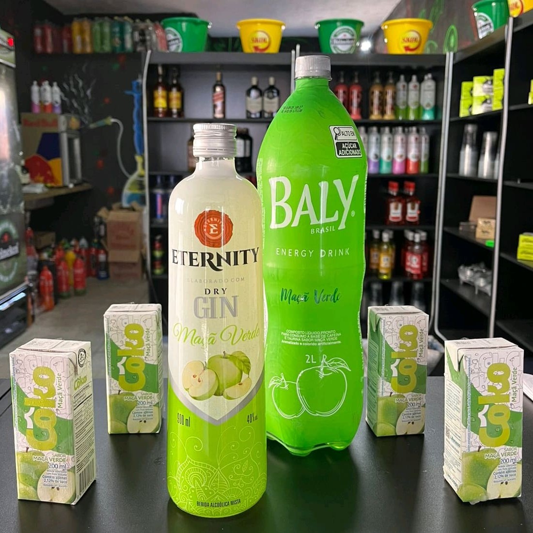 Combo De Gin Eternity Maça Verde 900ml Com Energético Baly 2l