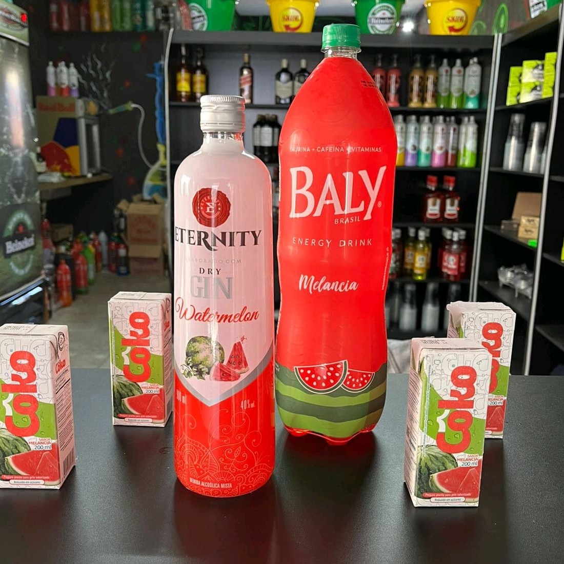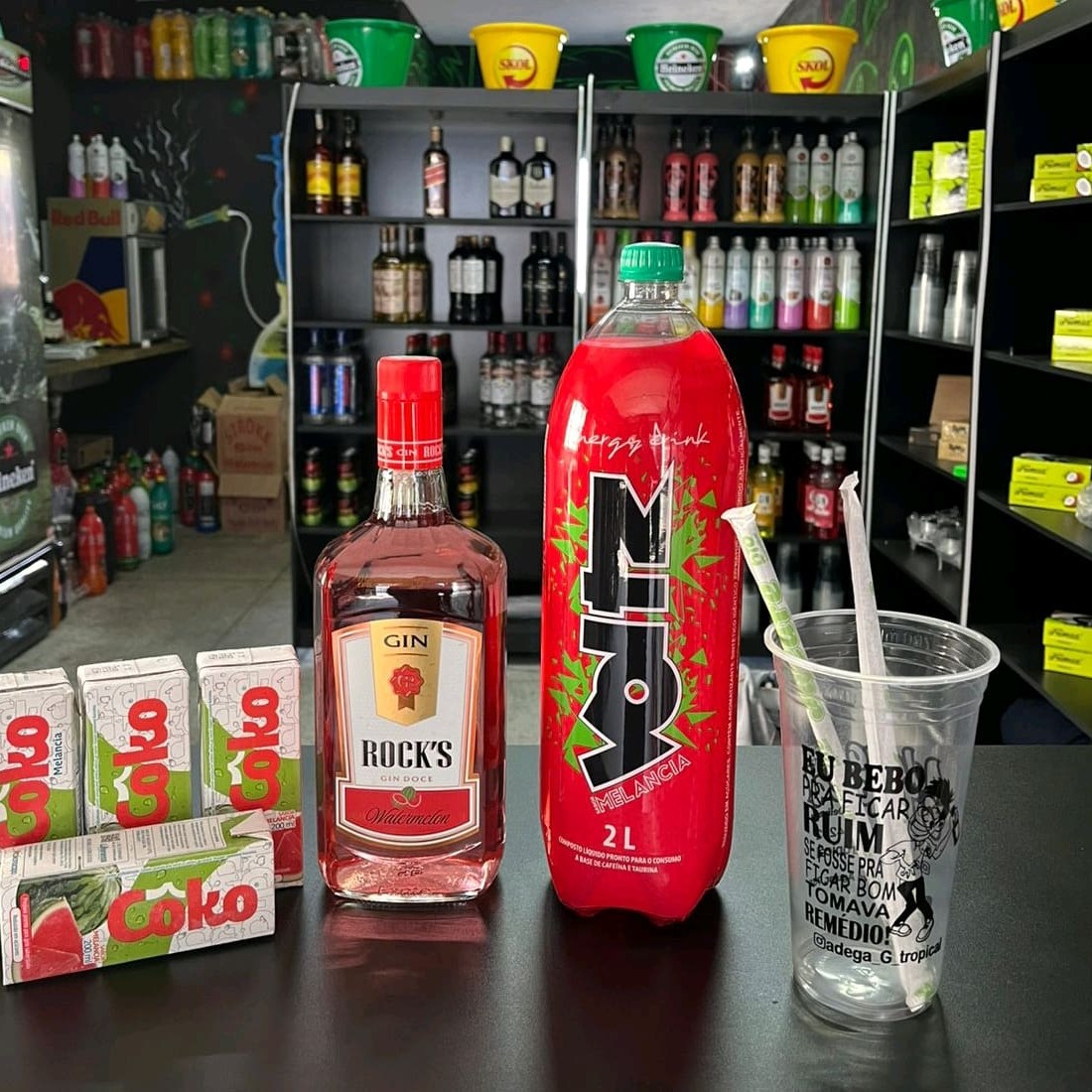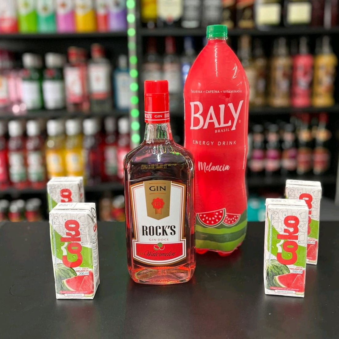 Combo De Gin Rocks Melancia 1l Com Energético Baly Melancia 2l Copiar