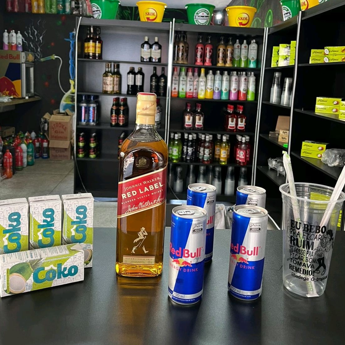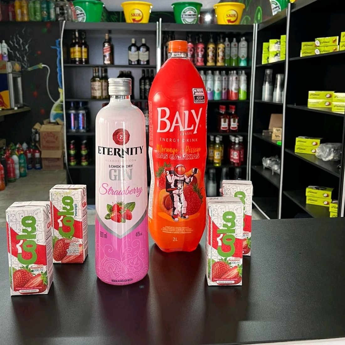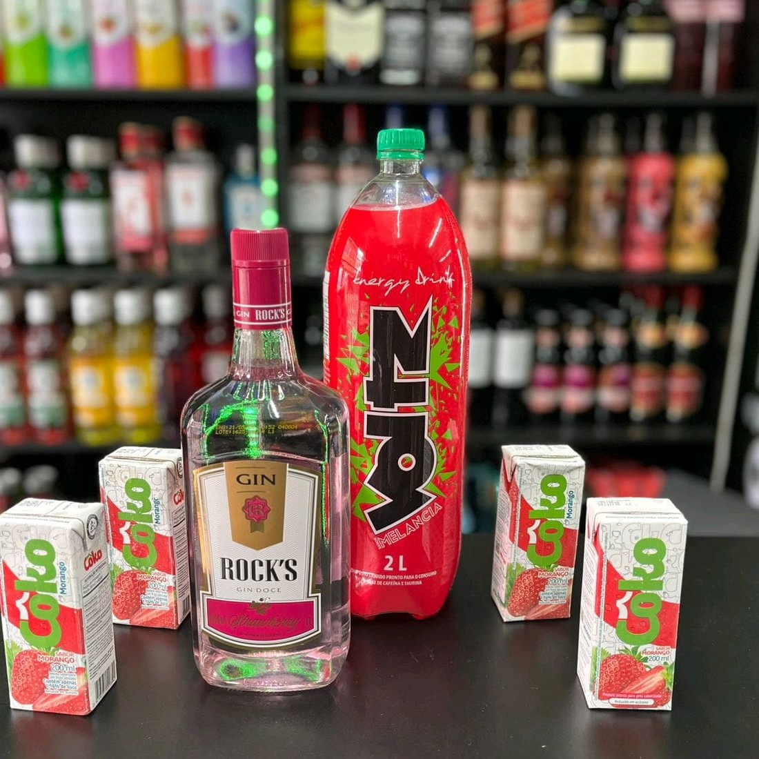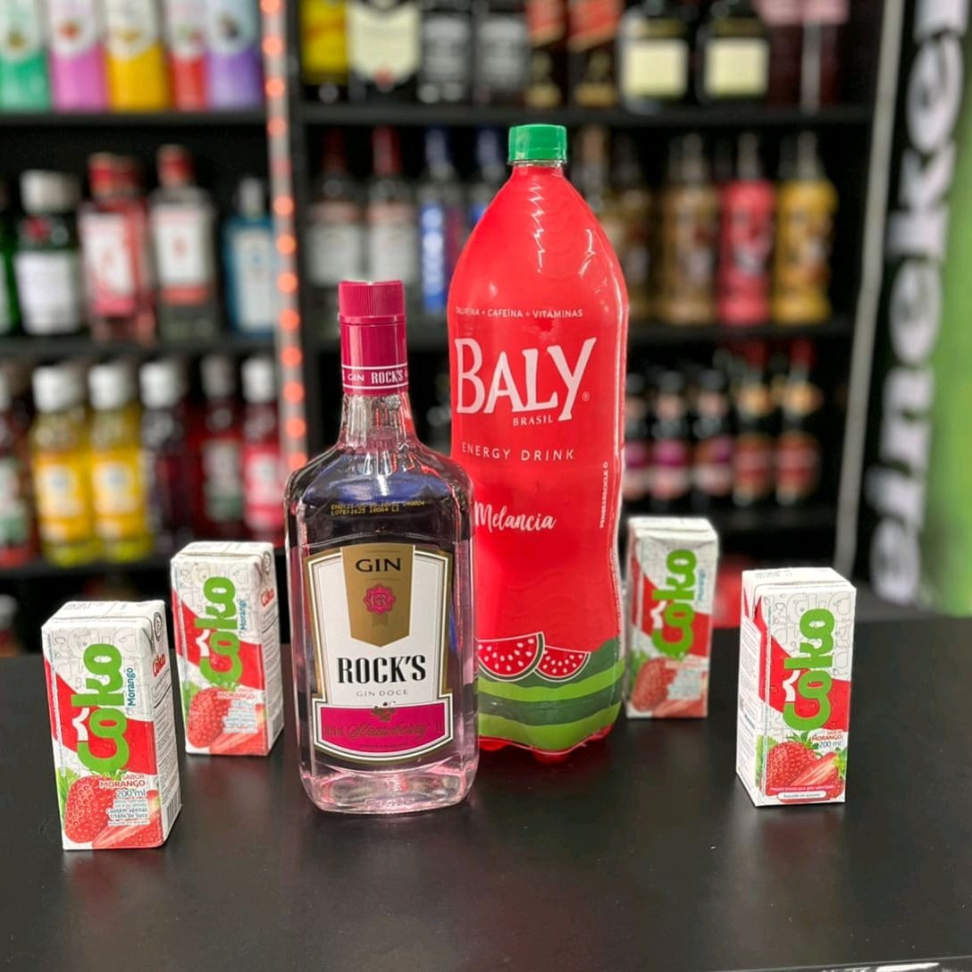Combo De Gin Rocks Strawberry 1l Com Energético Baly Melancia 2l Copiar