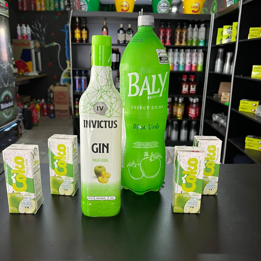 Combo De Gin Invictus Maçã Verde Com Energético Bally De Maça Verde 2l Copiar