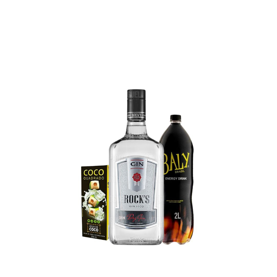 Combo De Gin Rocks Seco 1l Com Energetico Baly 2l