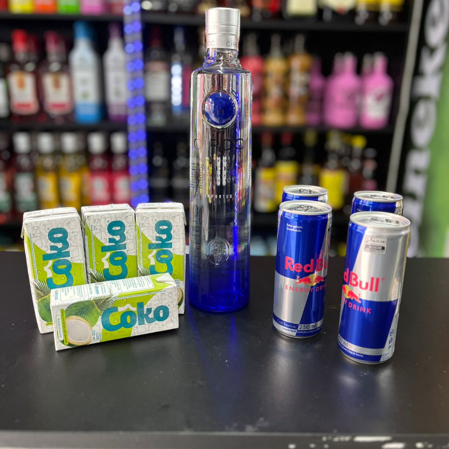combo de gin rocks seco 1l com energitico baly 2l