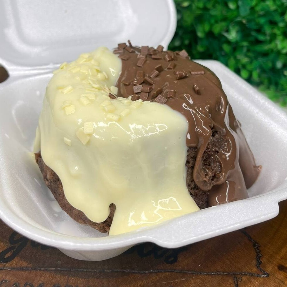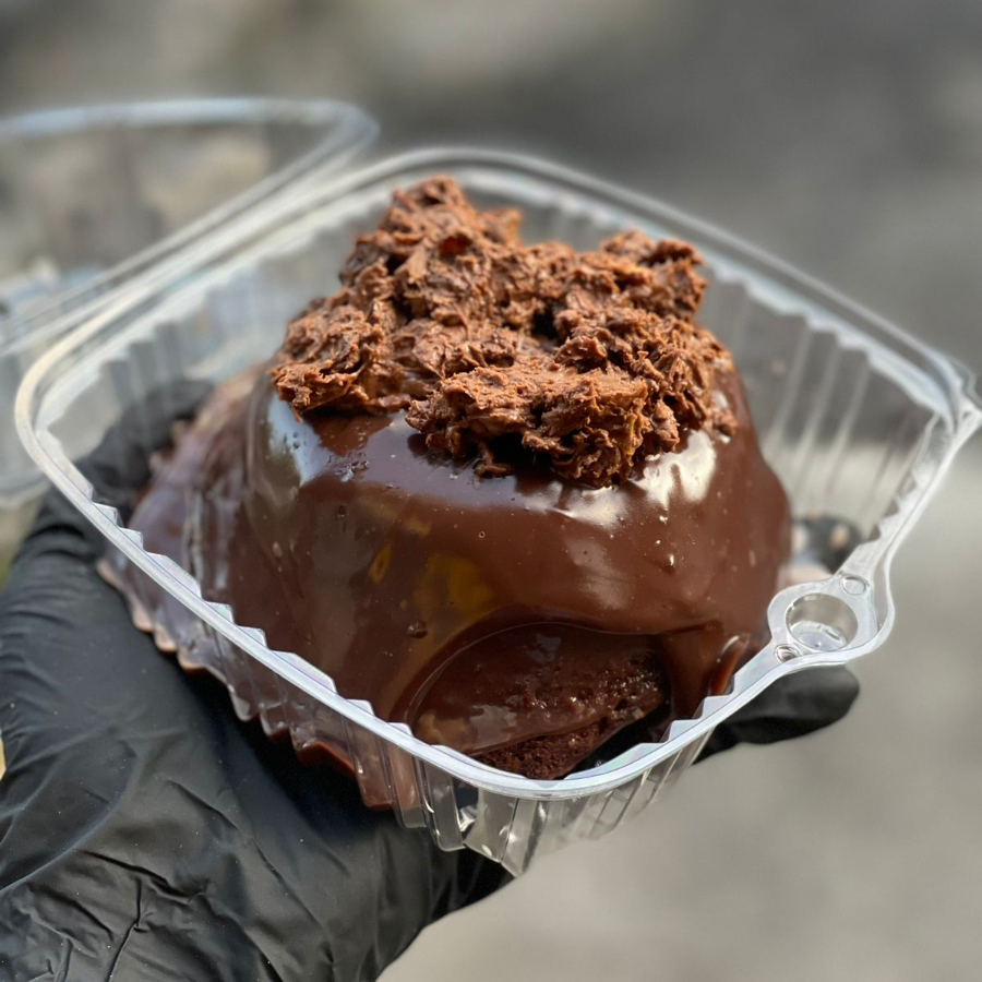 Delicioso bolo mini vulcão cenoura com cobertura de chocolate tudo artesanal