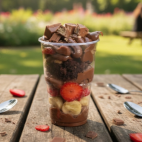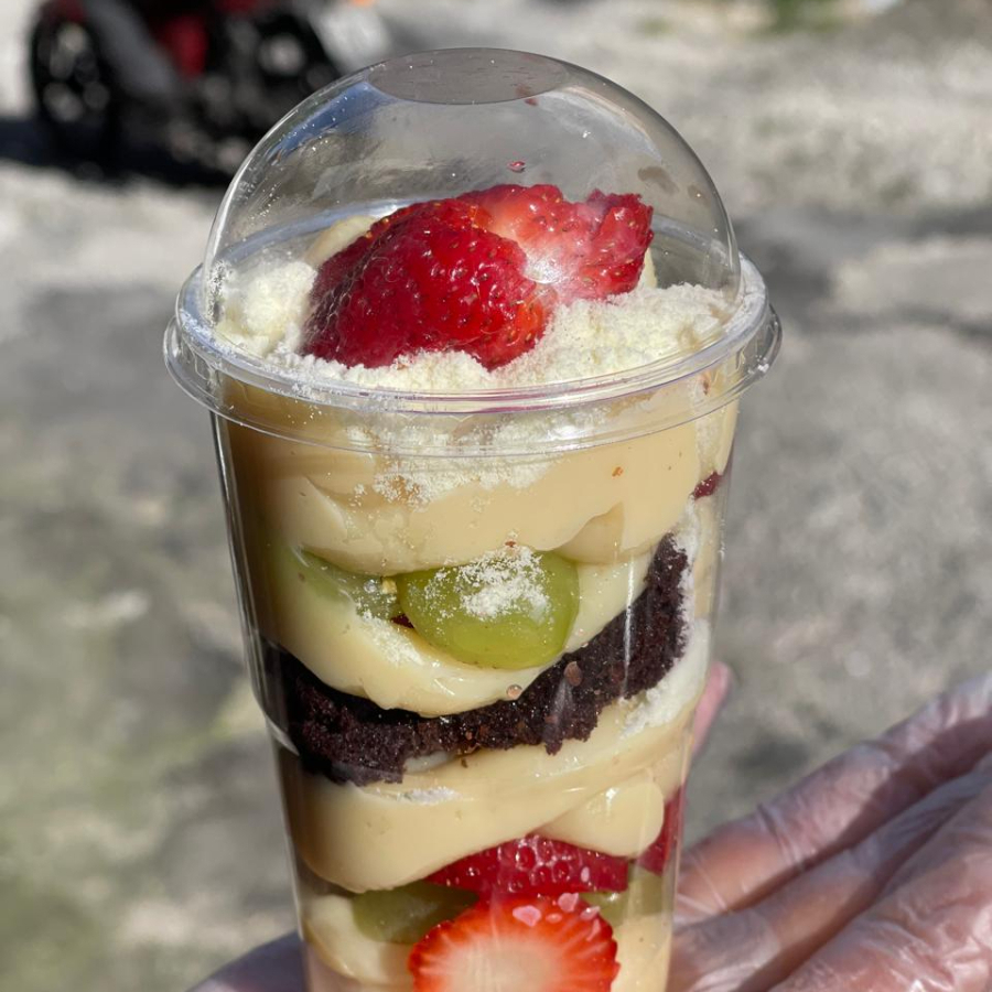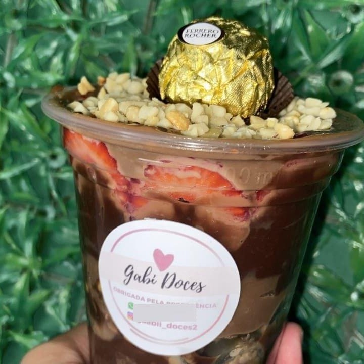 Igual um copo da felicidade porem tamanho familia! brownie , morango , uva , recheio de Ninho e leite em pó.