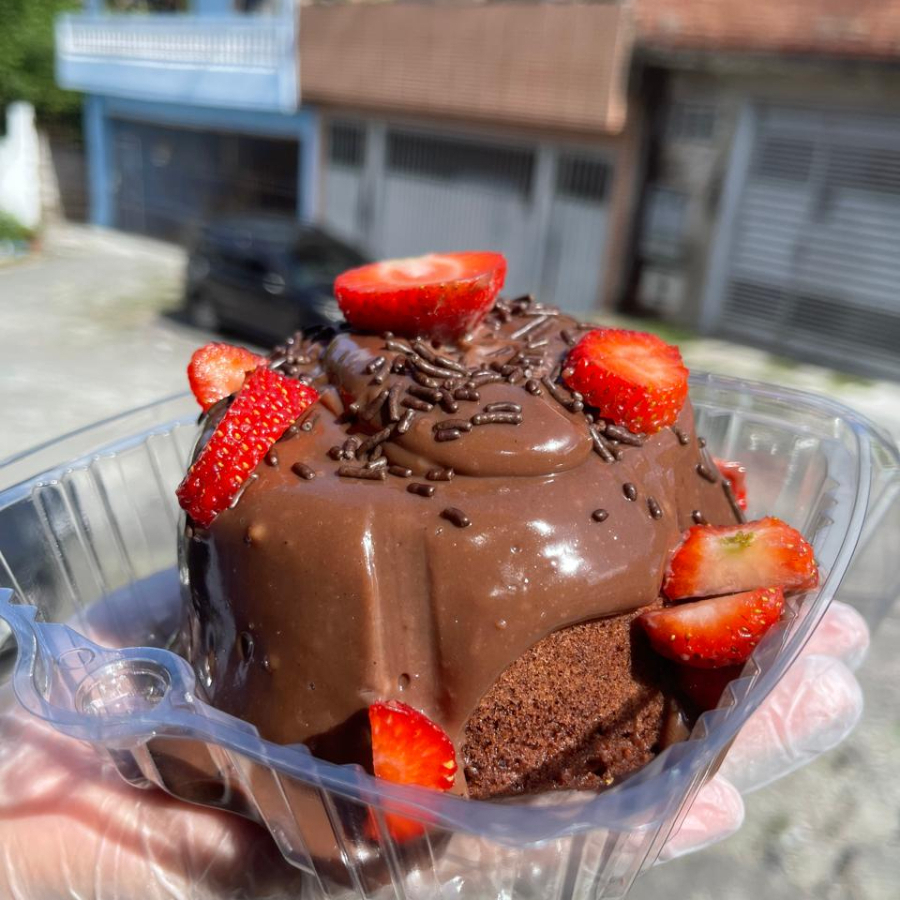 Mini Bolo Vulcão Brigadeiro Com Morango