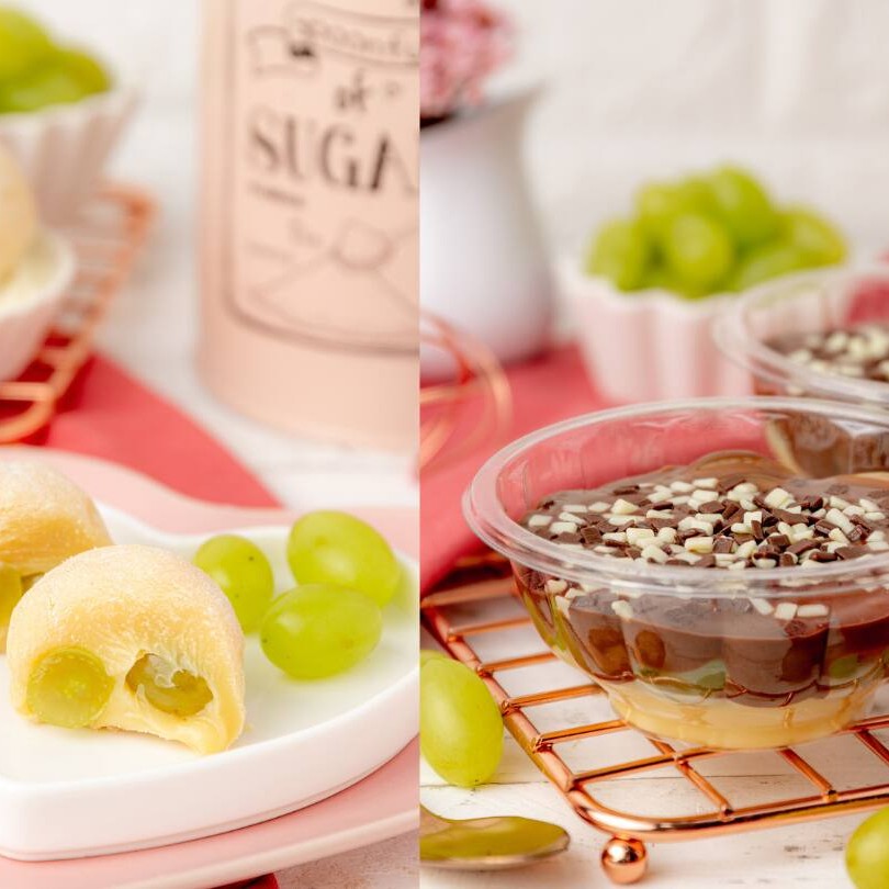 Delicinhas refrescantes com a nossa uva crocante sem caroço: 1 Brigadeirão Surpresa de Uva + 1 Taça Surpresa de Uva