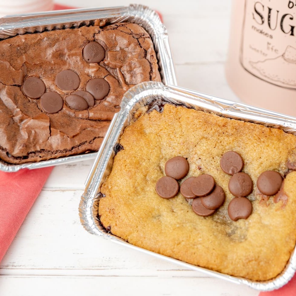 Combo perfeito para você experimentar os dois mais vendidos da Gabi's Cakes. Duas marmitinhas fresquinhas e deliciosas, brownie tradicional e Marmicookie com o recheio da sua escolha. Validade 5 dias. Peso aprox. 150g cada.