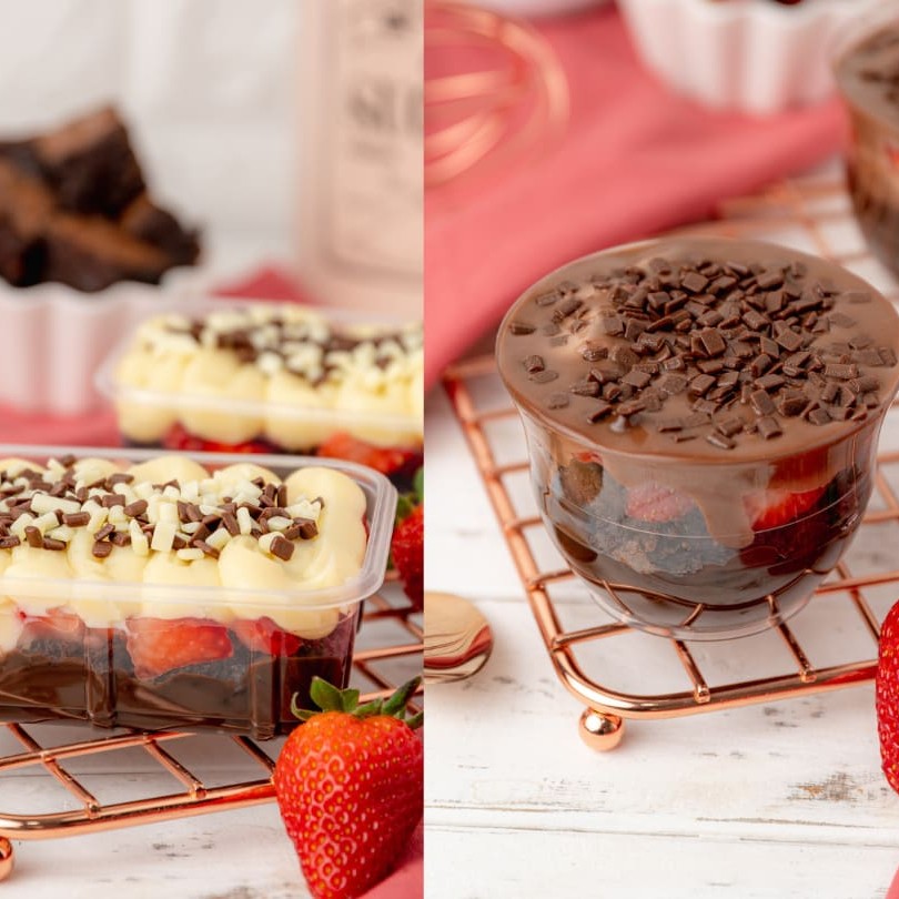 Os nossos queridinhos de morando, agora nesse combo perfeito: 1 Escondidinho de Brownie e Morango e 1 Brownie no Pote Chocólatra