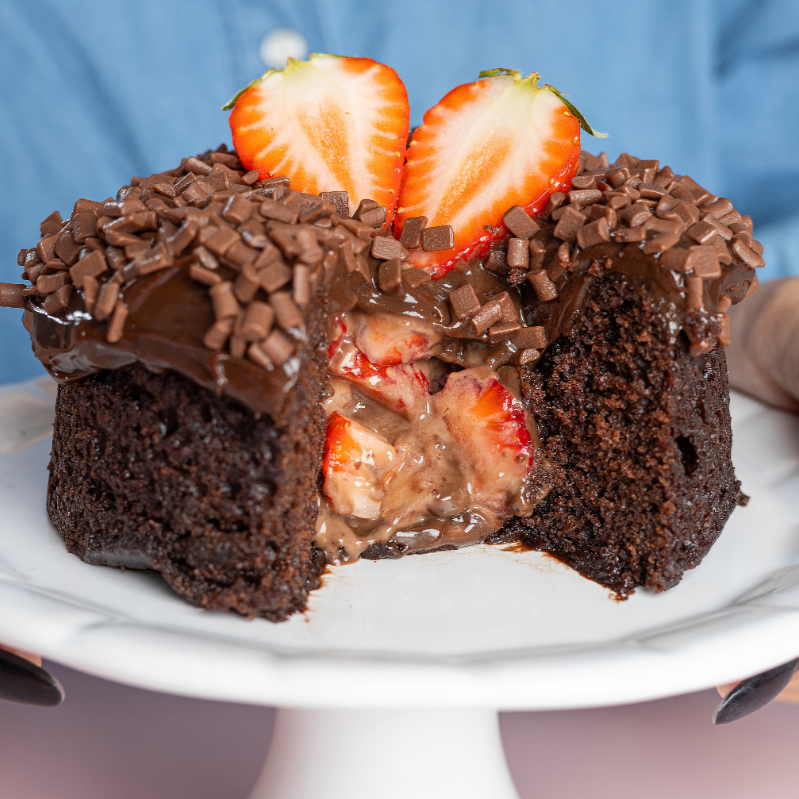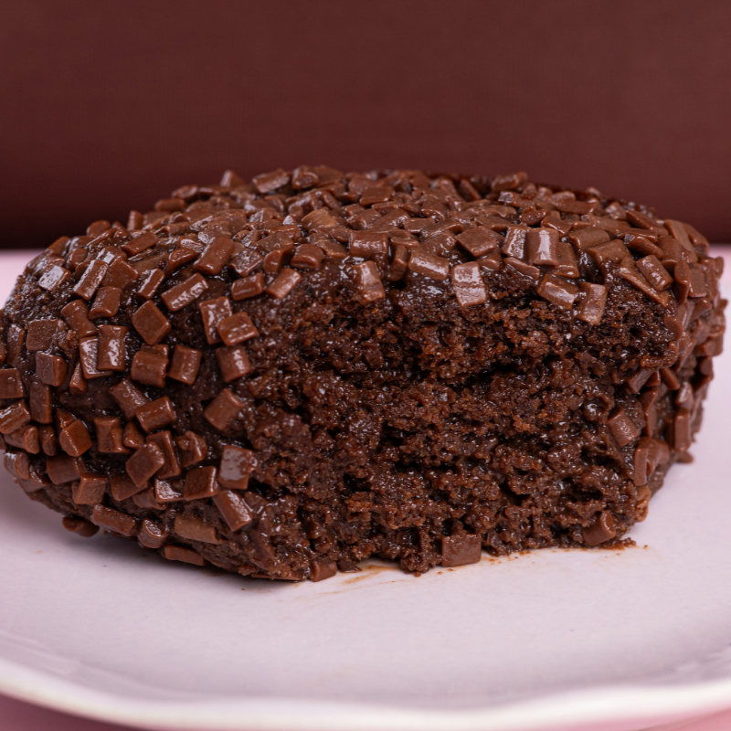 Massa super fofinha, preparada com ingredientes selecionados, coberta com um vulcão de brigadeiro gourmet cremoso feito à base de cacau 100% e finalizada com granulado de chocolate nobre ao leite. 350g