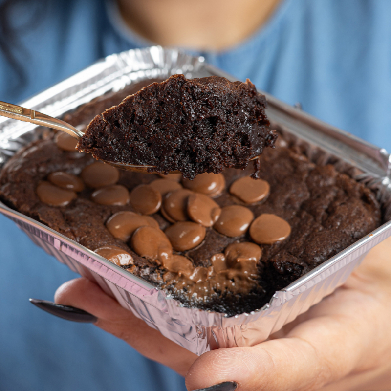 Nosso delicioso brownie chocolatudo na marmitinha com nosso queridinho brigadeiro trufado feito a base de chocolate nobre meio amargo. Combinação perfeita, doce na medida certa. 250g