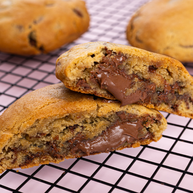 Inspirado nos clássicos cookies americanos! Um cookie redondo, com a massa macia e cremosa por dentro, levemente crocante por fora, recheado com Nutella.120g