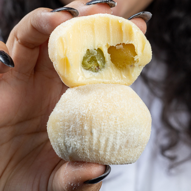 Brigadeiro gourmet cremoso, feito com Leite Ninho, recheado com uvas verdes sem caroço, finalizado com uma delicada camada de Leite Ninho em pó. 90g