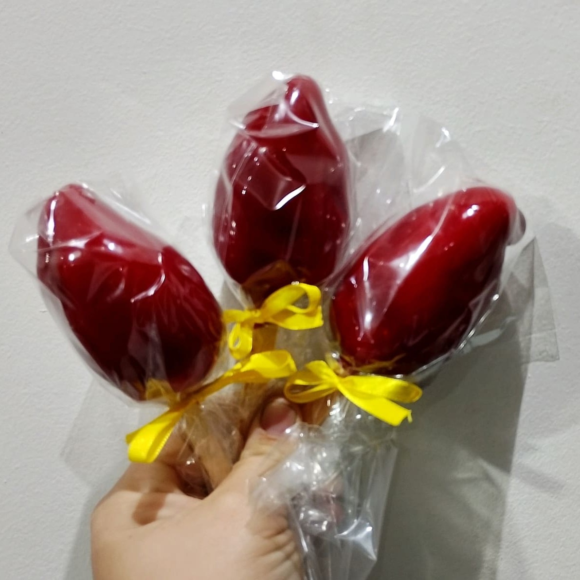 Delicioso algodão doce com marshmallow e Maçã do amor. Aproveite essas delícias.