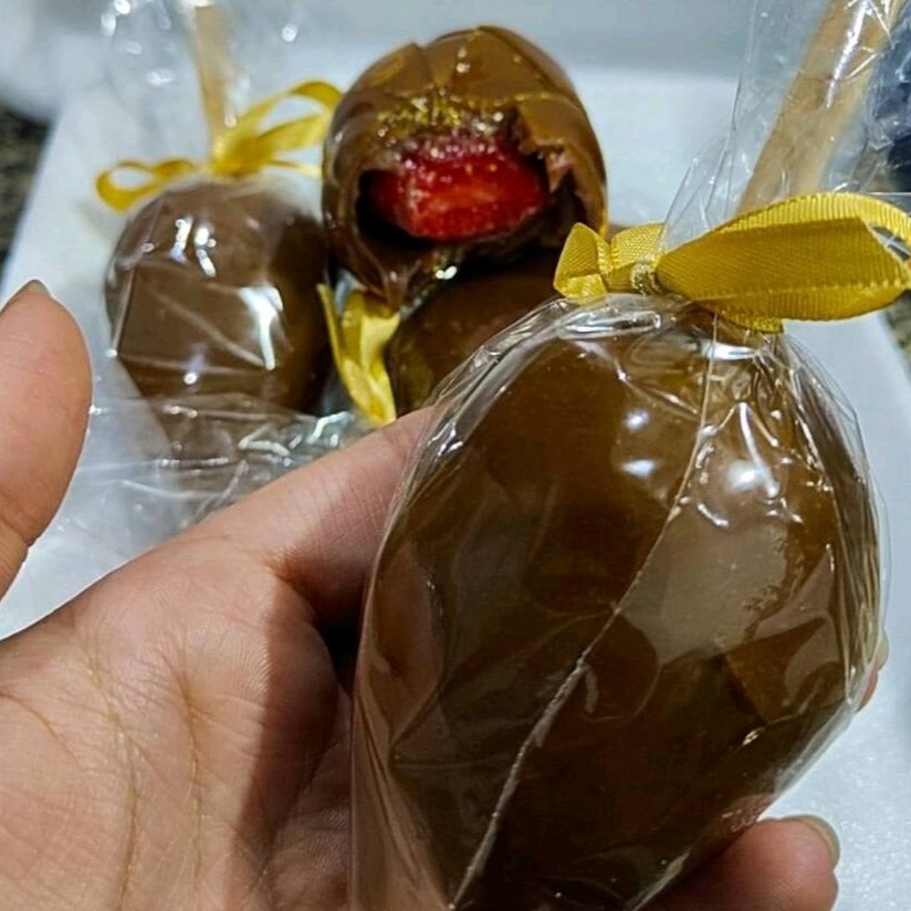 Delicioso Morango do amor com brigadeiro de Ninho, morango e a deliciosa casquinha caramelizada.