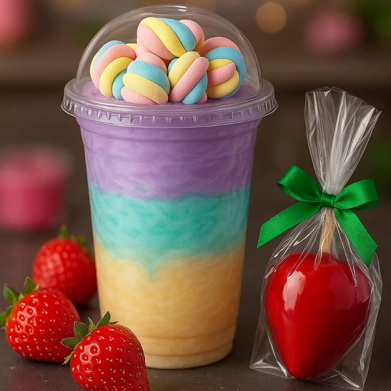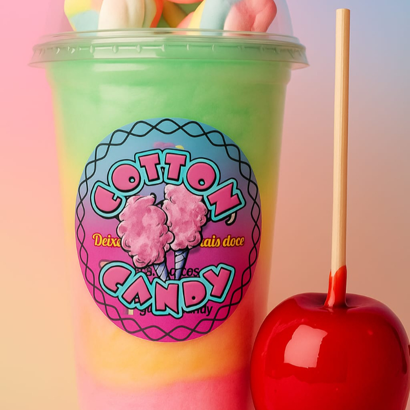 Delicioso algodão doce, macio e irresistível, junto com um saboroso marshmallow aproveite.