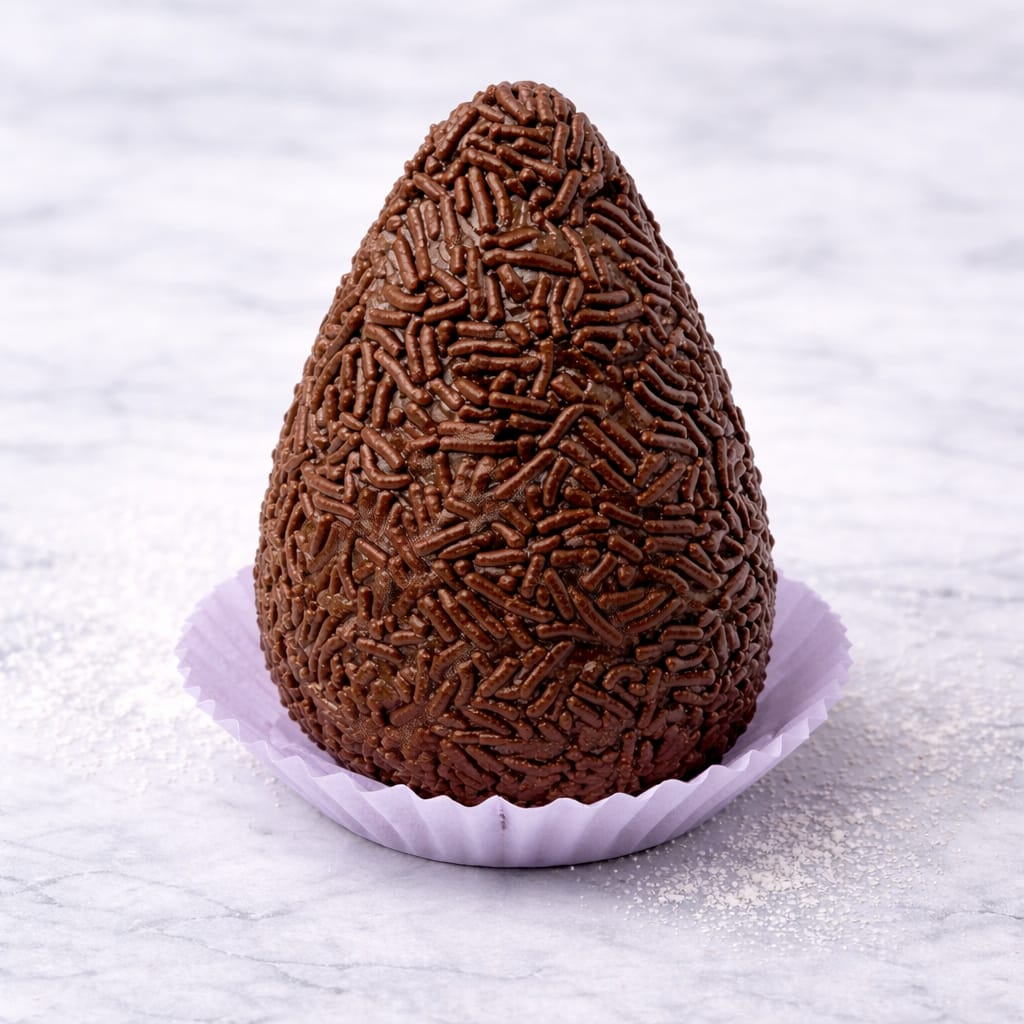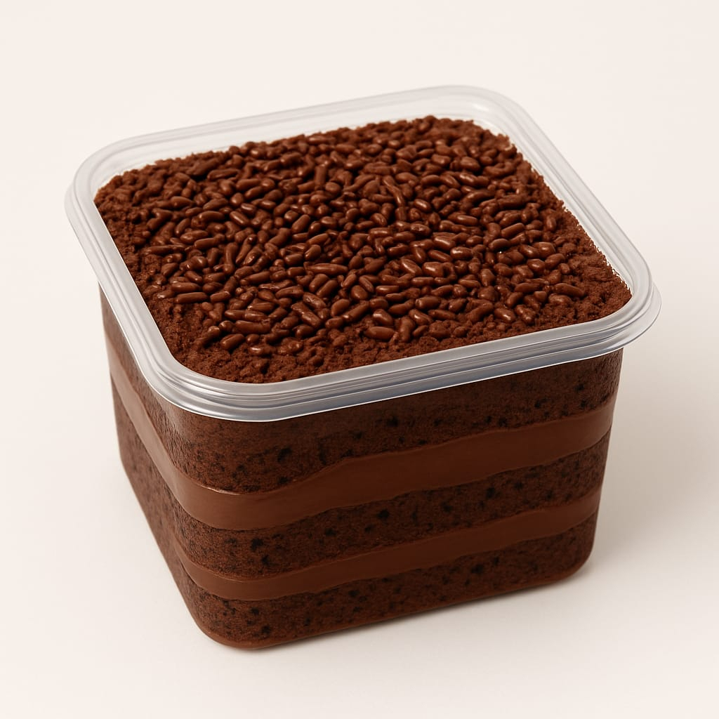 Bolo de pote com massa de chocolate, com nosso delicioso brigadeiro finalizado com granulados.