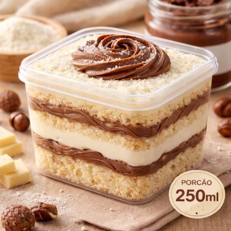 Delicioso bolo de pote de Ninho com Nutella, com nossa massa branca e delicioso brigadeiro de Ninho com Nutella