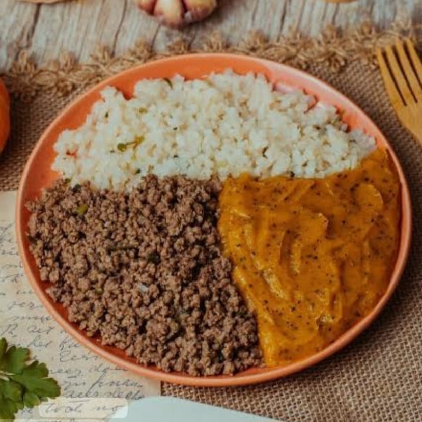 Carne Moída, Arroz Branco, Purê De Abóbora E Couve Refogada 300g