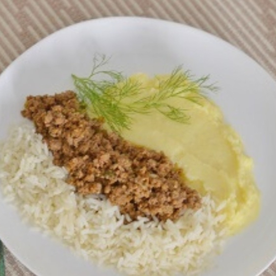 Carne Moída, Arroz Branco, Purê De Mandioquinha E Couve Refogada 300g