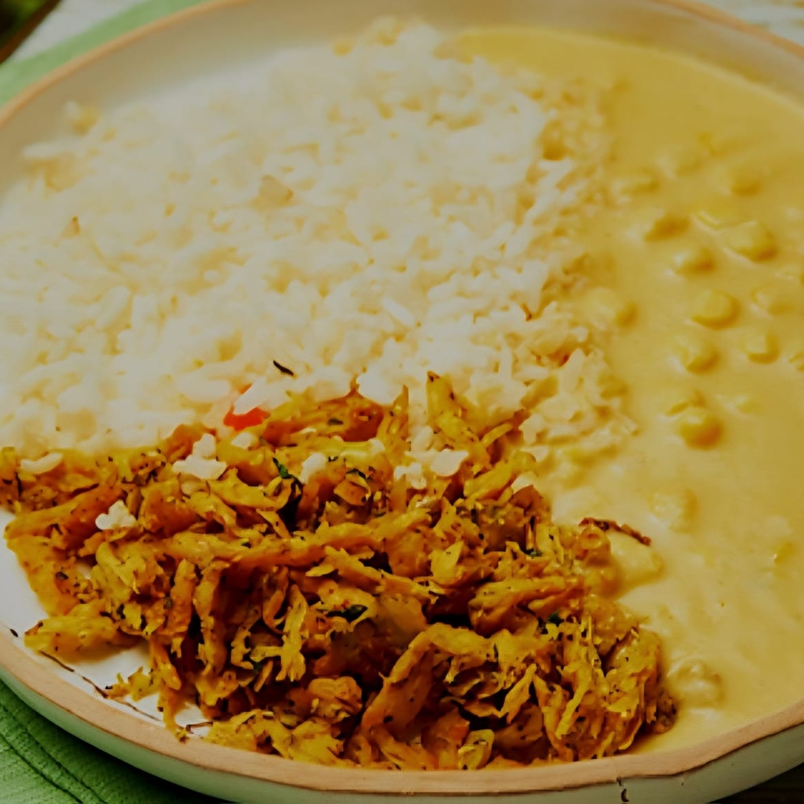 Frango Desfiado, Arroz Branco E Creme De Milho 300g