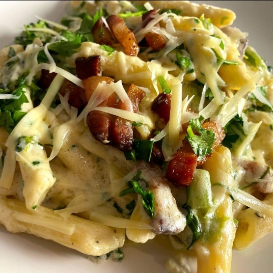Penne, Molho Branco E Calabresa Defumada 300g.