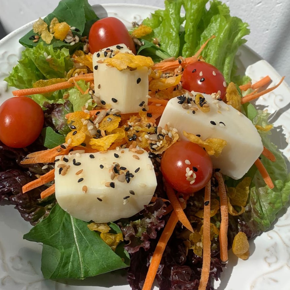 Mix De Folhas Com Palmito, Cenoura Ralada, Tomate Grape E Granola Salgada