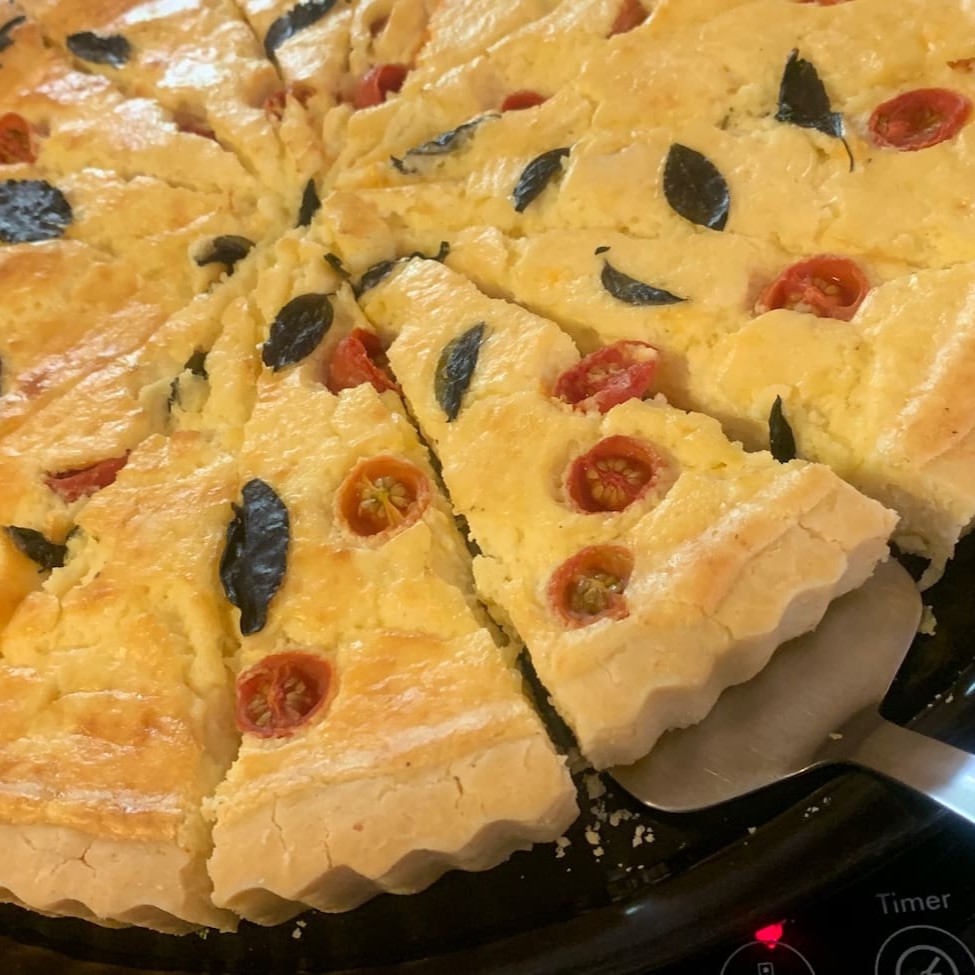Quiche sem glúten acompanhado de salada plus (mix de folhas, palmito, tomate grape e cenoura ralada) (Opção vegetariana)