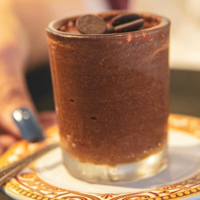 Mousse de chocolate sem glúten, sem lactose e sem açúcar.