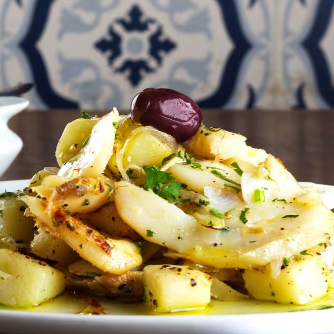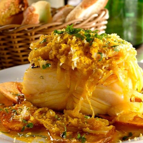 Bacalhau À moda d’Andorinha, serve duas pessoas.