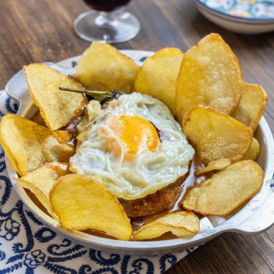 Filé mignon grelhado, jamon, alho, alecrim e ovo frito. Acompanha batata frita portuguesa