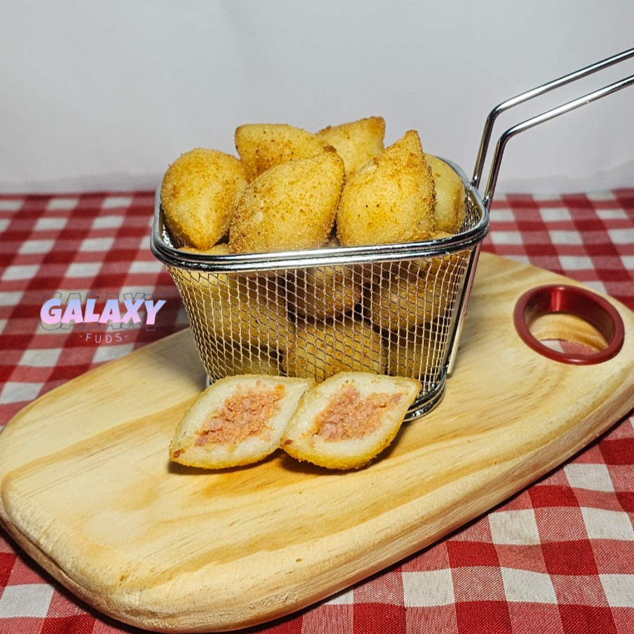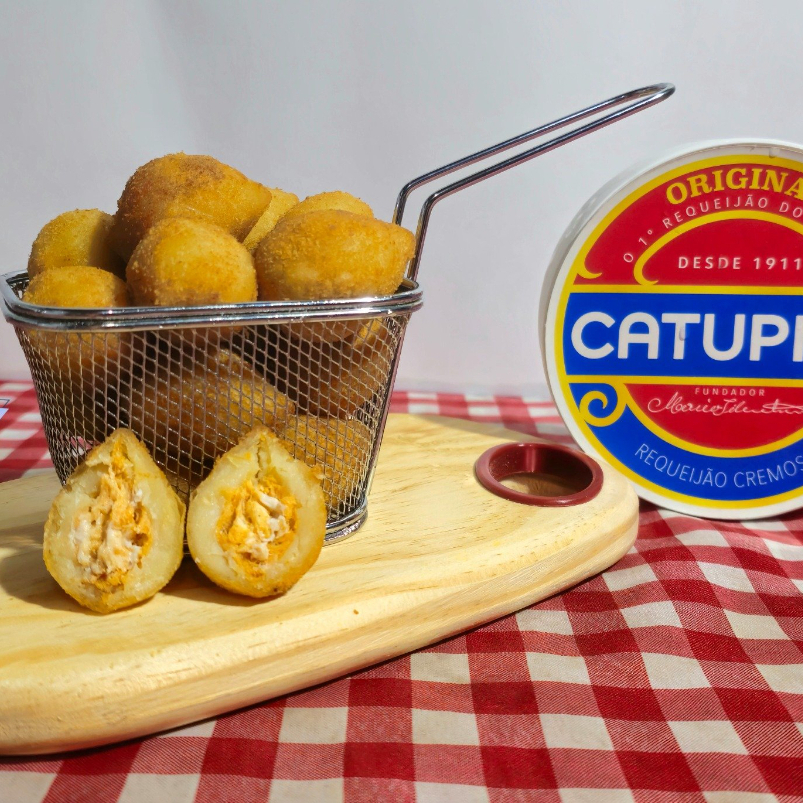 Recheada de peito de frango com Catupiry Original. Massa com caldo de frango artesanal. Sem ovos ou leite. Sem ovos, contém lactose.