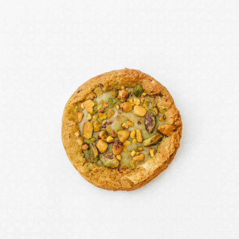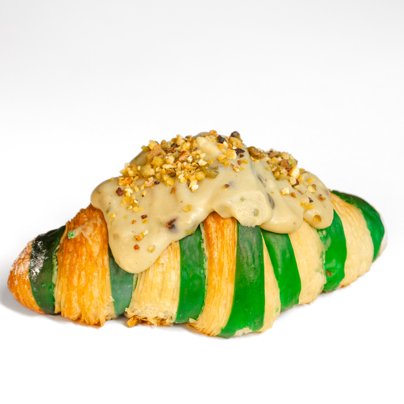 Massa folhada artesanal recheado com creme de pistache, coberto com creme de pistache picado por cima!