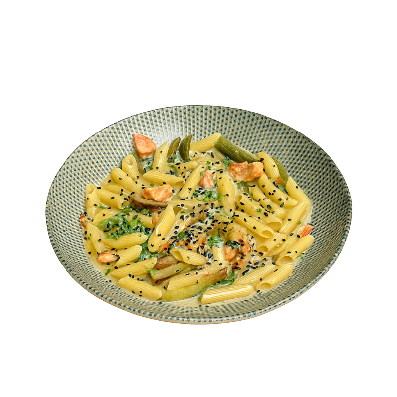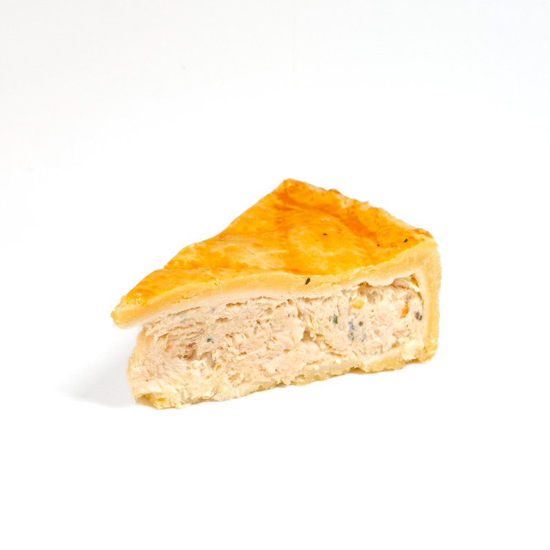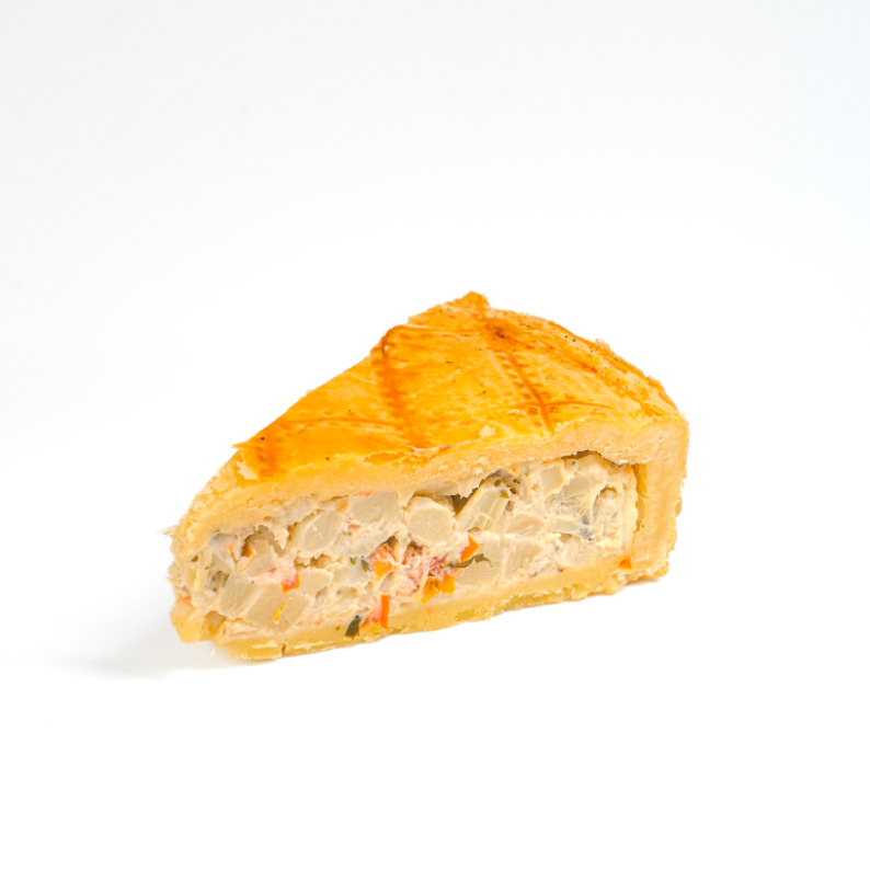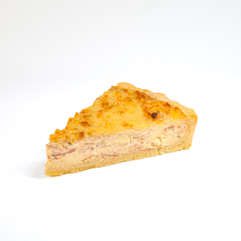 Massa de base amanteigada crocante e sequinha recheada de bacon e presunto com molho bechamel.