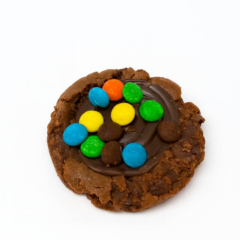 Cookie de Chocolate com recheio de brigadeiro e M&Ms