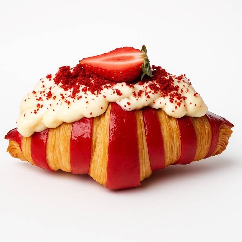 Massa folhada artesanal recheado com creme leve e aerado de cream cheese, intercalado com geleia de frutas vermelhas.