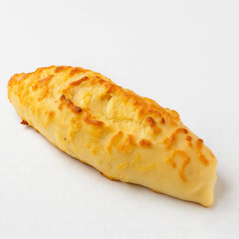 Massa de pão de leite, recheado com presunto e queijo e assada.