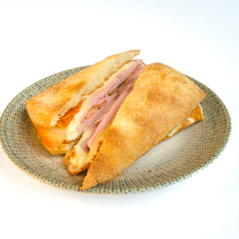 Feito com o pão que você escolheu. Clássico sanduíche quente com presunto e queijo derretido, prensado na chapa até ficar dourado e crocante.