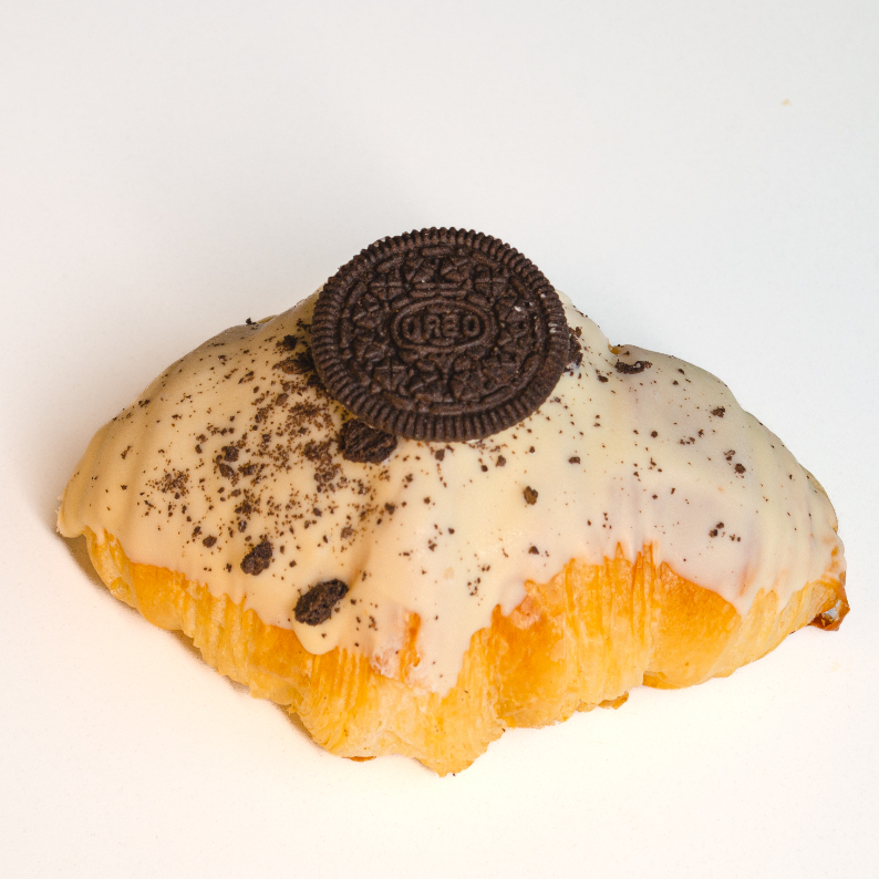 Massa folhada artesanal recheado com creme de Oreo coberto com chocolate branco.