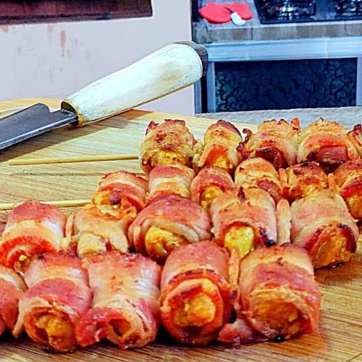 Mistura perfeita queijo e bacon assado na brasa delicioso.