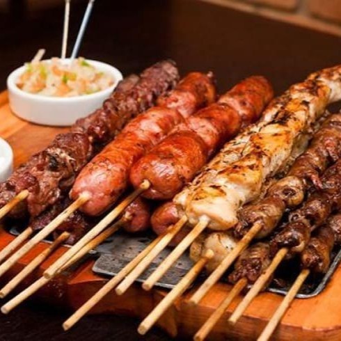 Delicioso espetinho de carne com Linguiça.