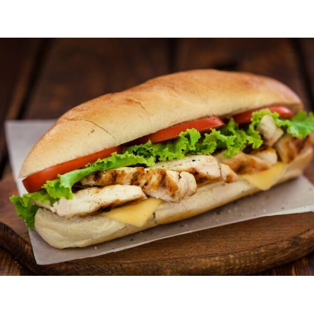 130 gramas de frango grelhado na brasa, baguete com parmesão em cima,queijo mussarela, Catupiry de boa qualidade, molho da casa ,barbecue. (Salada Na Imagem É Ilustração Lanche Nao Vem )