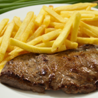 Acompanha arroz branco, feijão, ovo, farofa e salada.