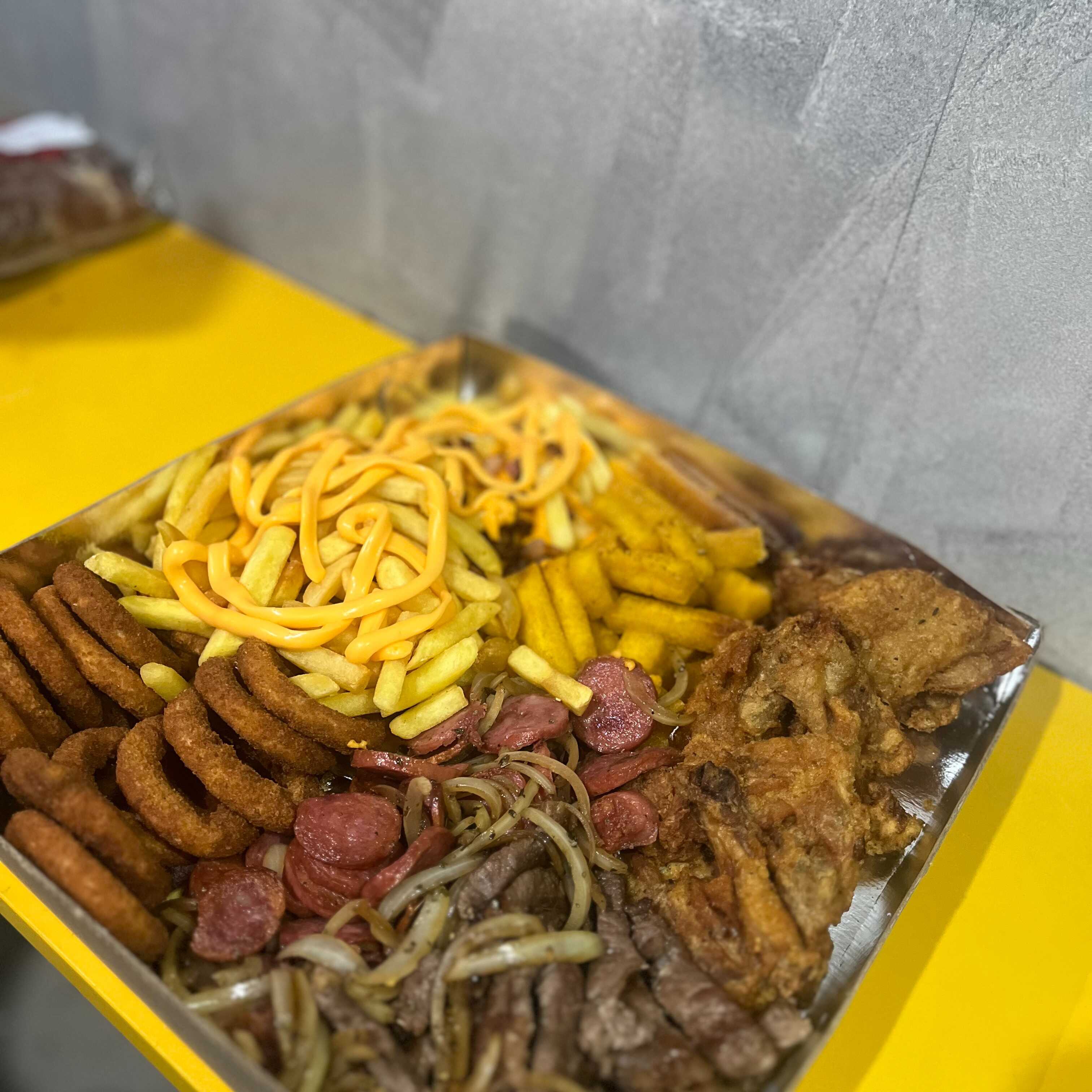 Batata frita, Polenta, Frango empanado, Calabresa, Cebola empanada, Contra filé.