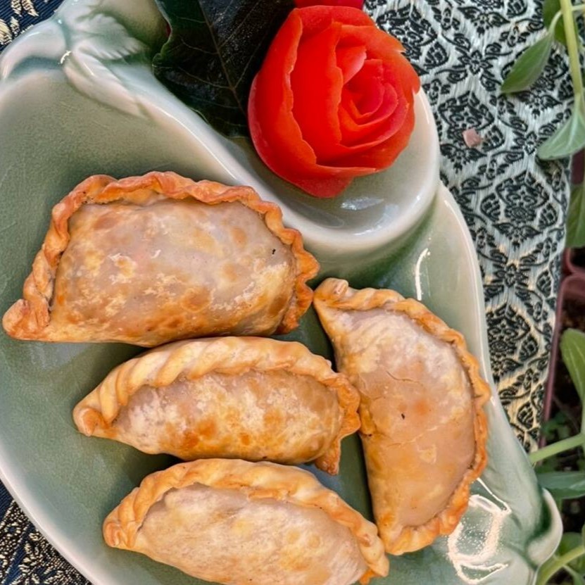 Pasteizinhos recheado com amendoim e legumes, temperado com curry. (4 unidades)